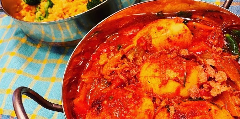 - Eat immediately with steaming hot white rice, green chilies, and lime wedges.