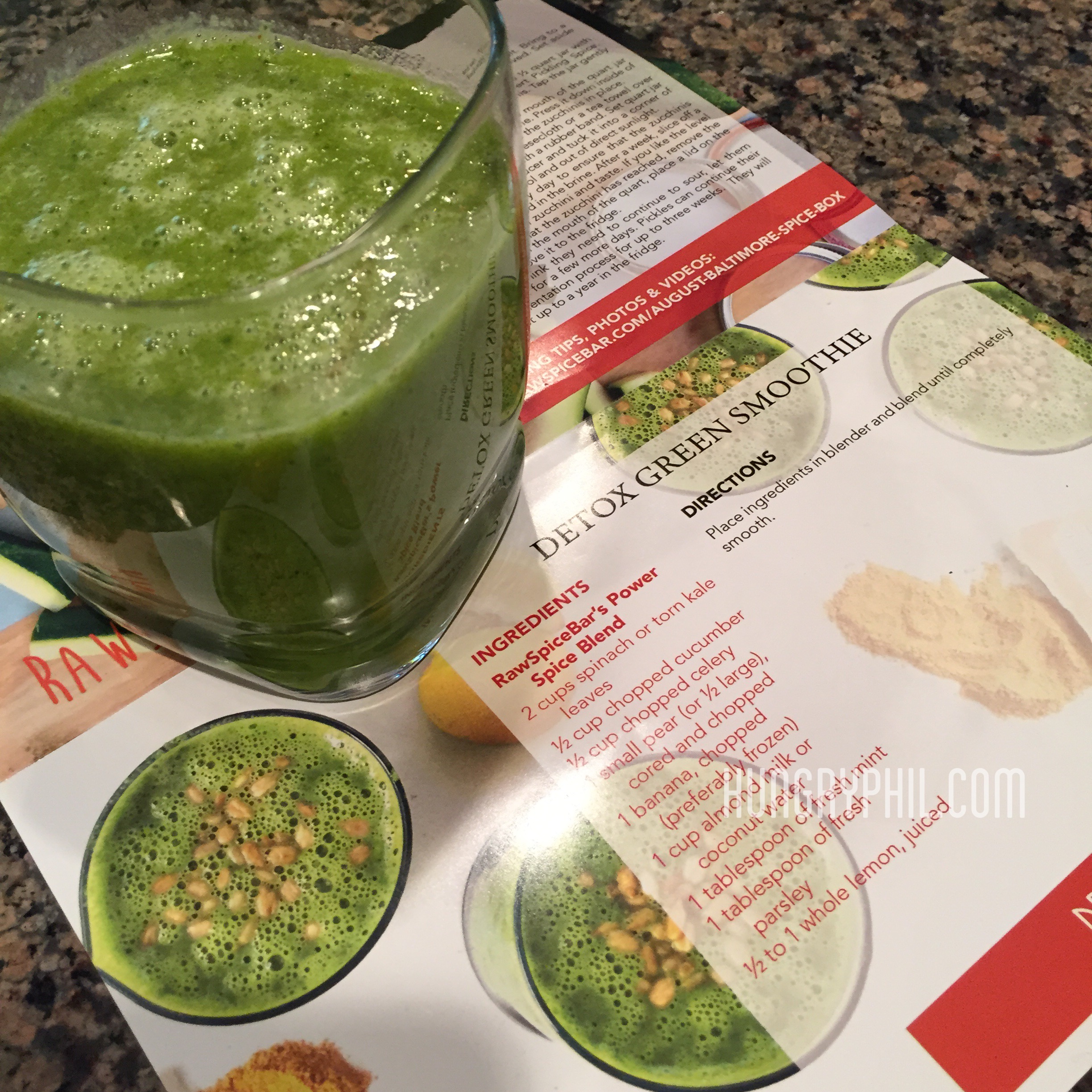 The recipe for the green detox smoothie comes from RawSpiceBar.com https://rawspicebar.com/blog/the-power-spices-in-augusts-spice-box/